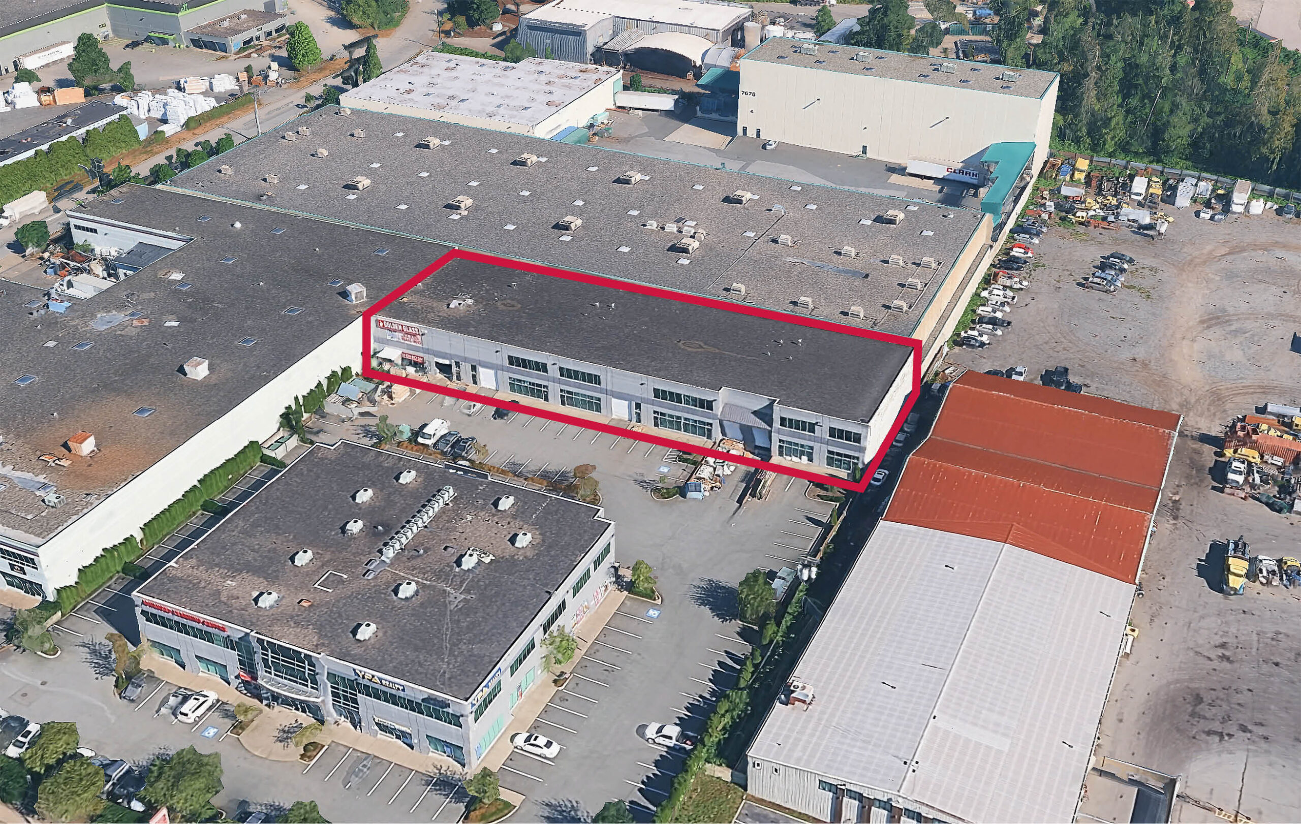 The property is located within the Newton industrial area of Surrey, just east of Anvil Way and near 132nd Street, on the north side of 76th Avenue. 76th Avenue is a major thoroughfare within the area, providing a direct connection to both King George Highway and Scott Road. This central location offers efficient access to key transportation routes and surrounding industrial and commercial nodes throughout Surrey and the broader Metro Vancouver region.