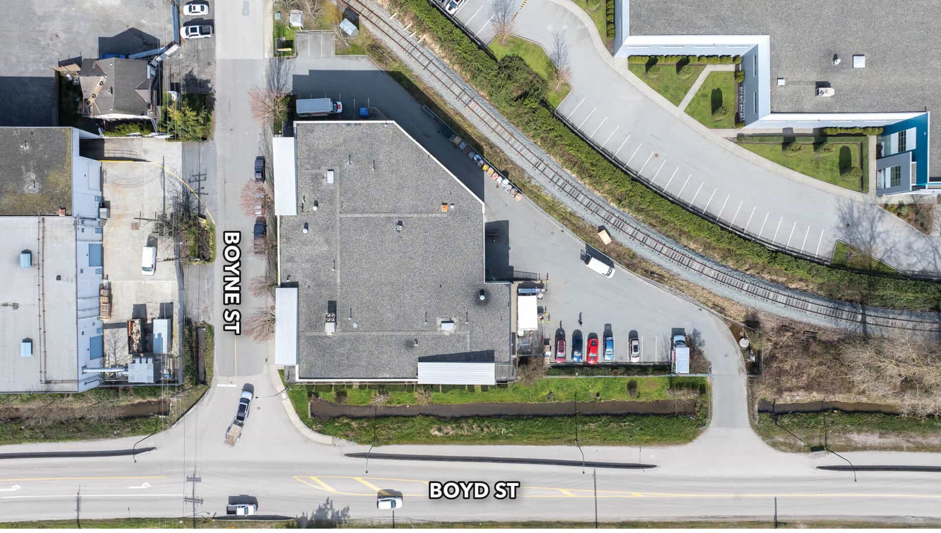 The Subject Property is prominently located at the corner of Boyne Street and Boyd Street in the Queensborough neighbourhood of New Westminster, directly adjacent to the Queensborough Logistics